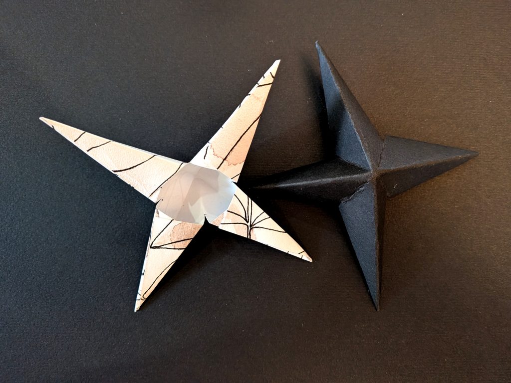 Collez les pointes pour obtenir une étoile en volume à 4 branches.