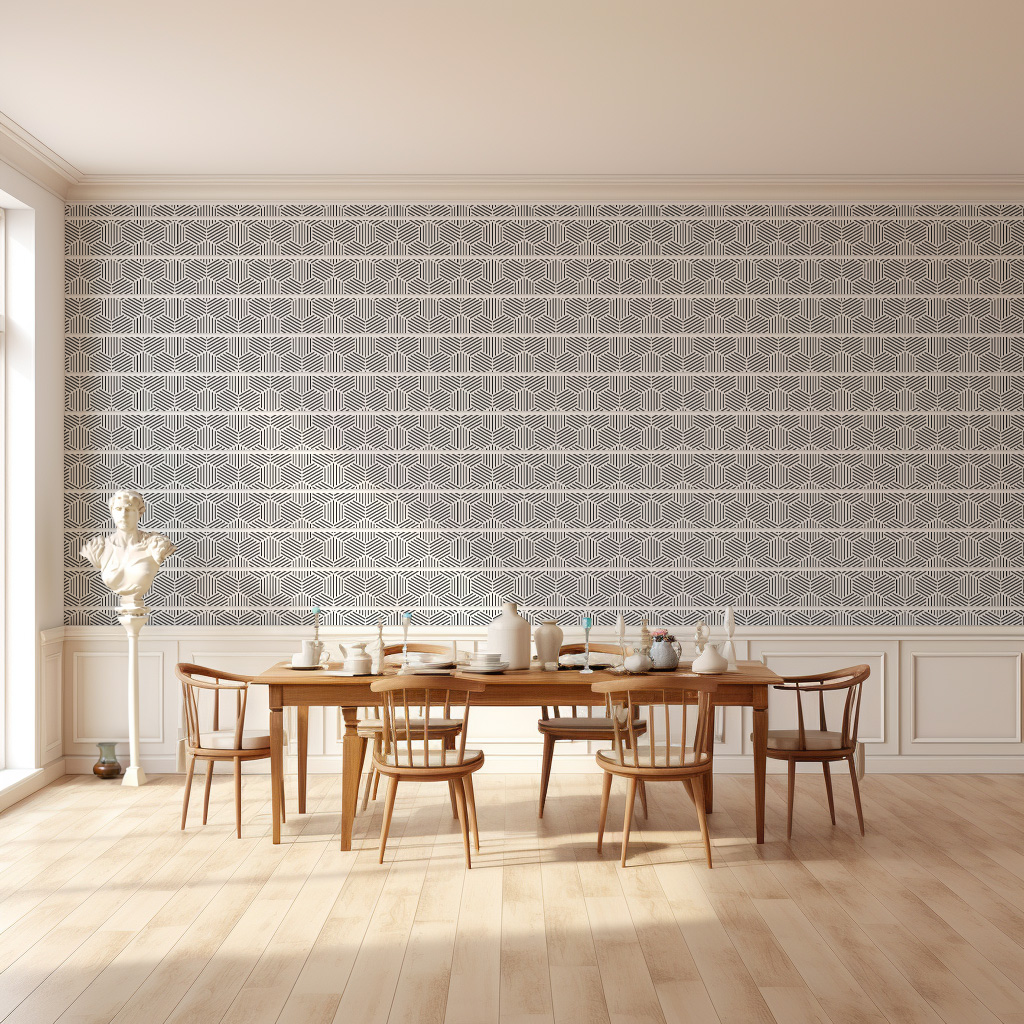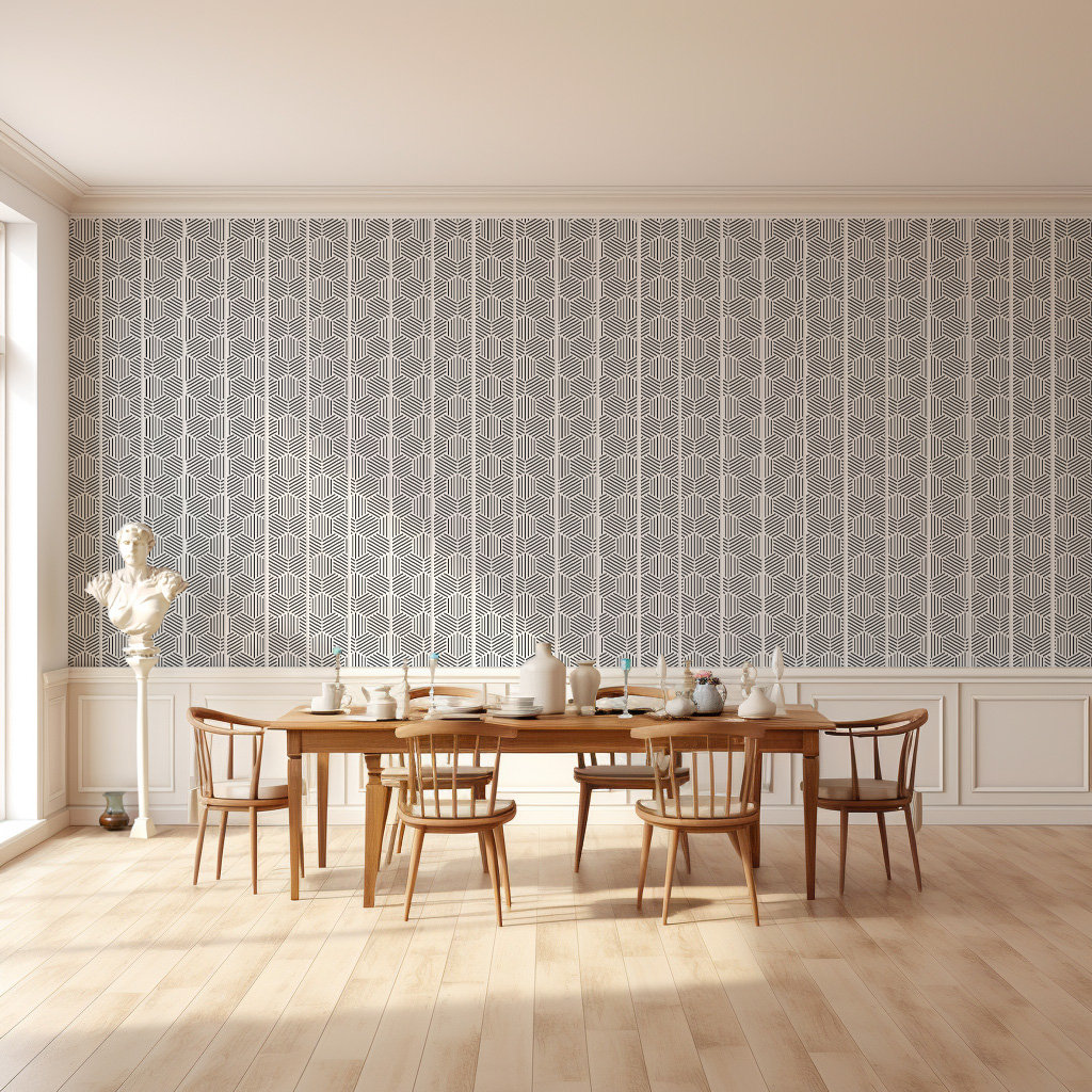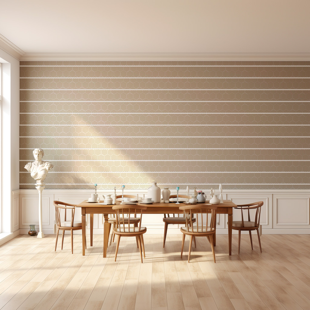 Avec ses formes géométriques élégantes et ses lignes épurées, ce papier peint crée une atmosphère contemporaine et raffinée, parfaite pour mettre en valeur le caractère unique de votre pièce de vie.