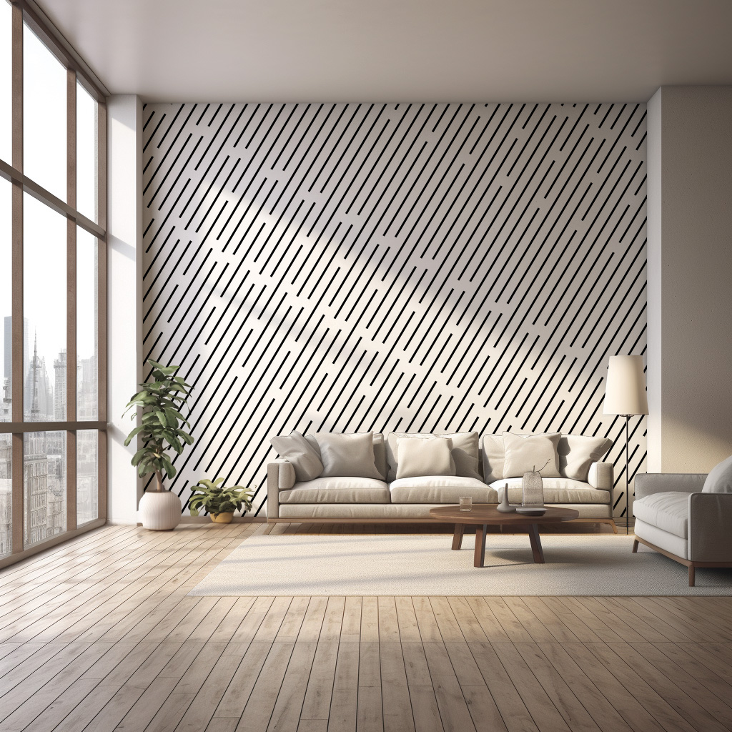 Optez pour une élégance moderne avec notre papier peint aux motifs de lignes diagonales, sobre mais efficace pour habiller un mur avec classe.