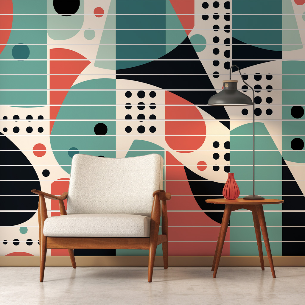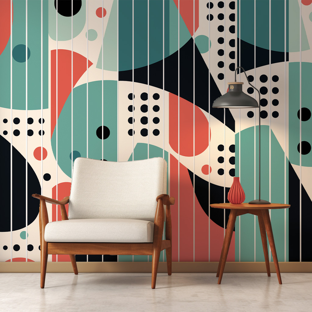 Plongez dans une expérience visuelle originale et audacieuse avec notre papier peint abstrait, où des motifs graphiques aux teintes pastel se mêlent dans une composition unique et dynamique.